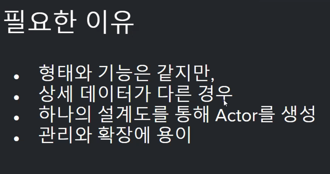 - Spawn Actor from class: class로부터 액터를 스폰함 -> 이 때 transform은 필수적임