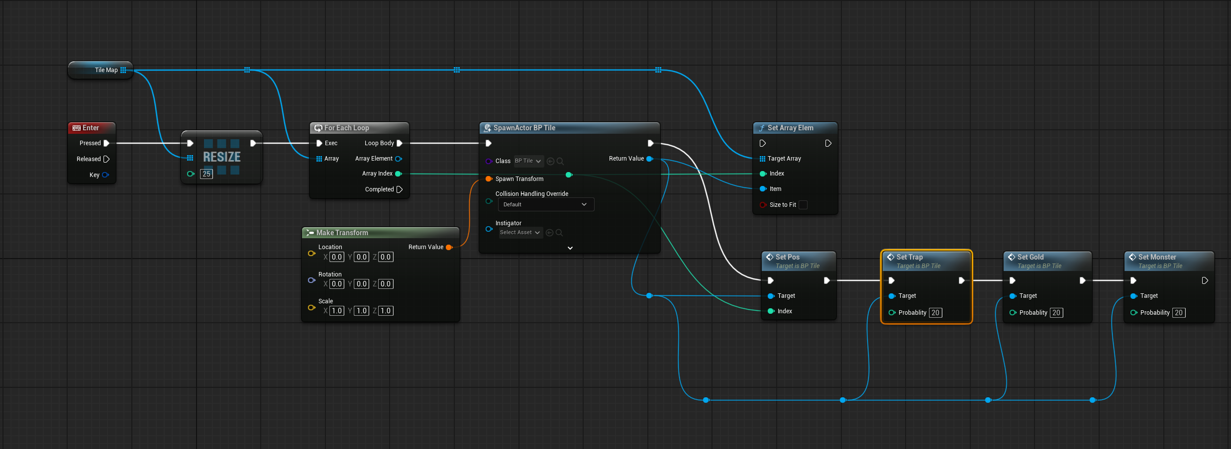 - Make Transform -> Actor의 transform 즉, 위치 조정, Basic map의 타일 1칸당 크기는 100