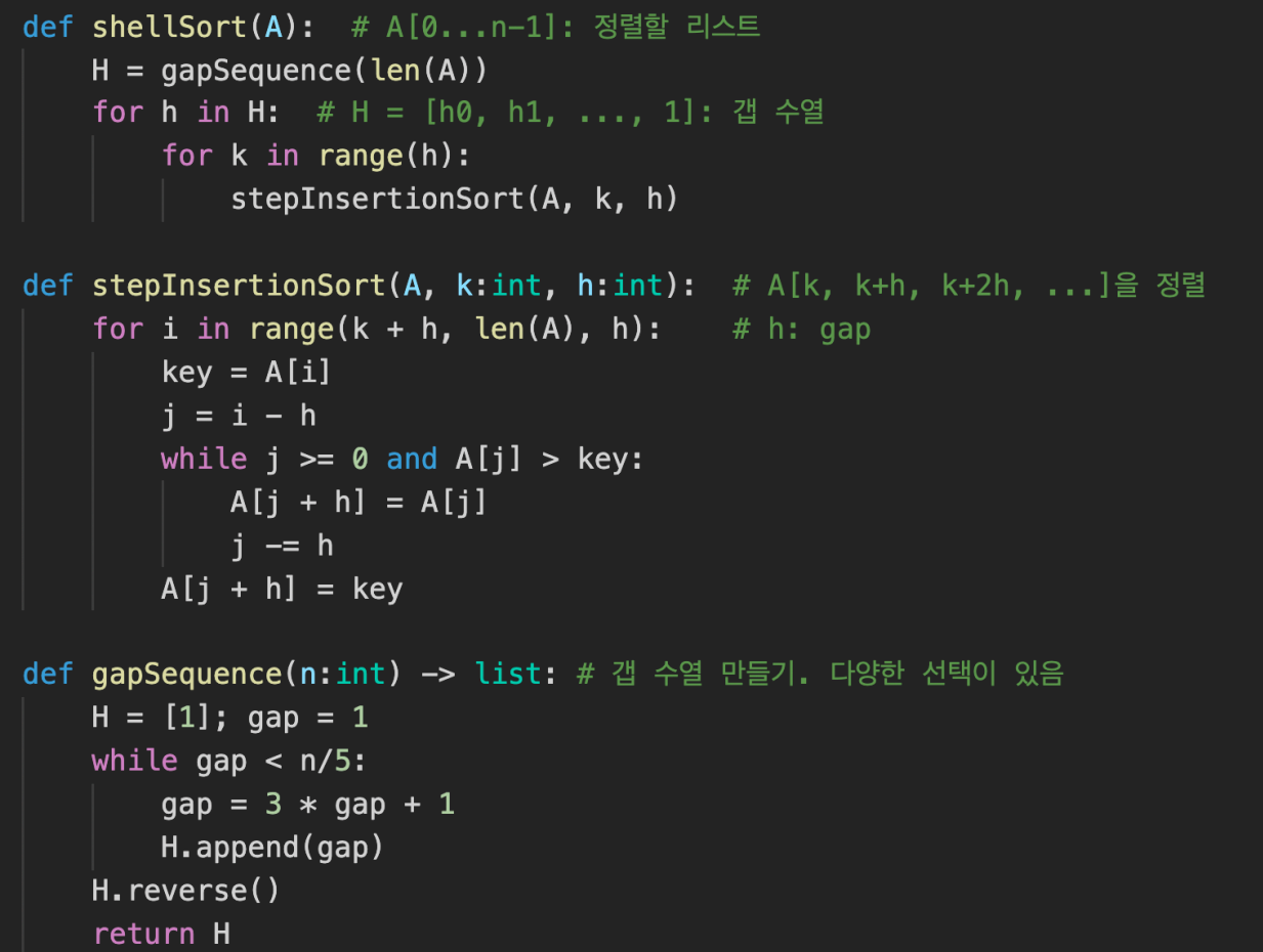 - Insertionsort(삽입정렬)를 일정한 gap에 의해 실행