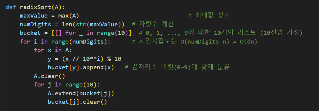 - 시간복잡도 - O(dn) (d: 최대인 수의 자릿수, 일반적으로 10이하)
