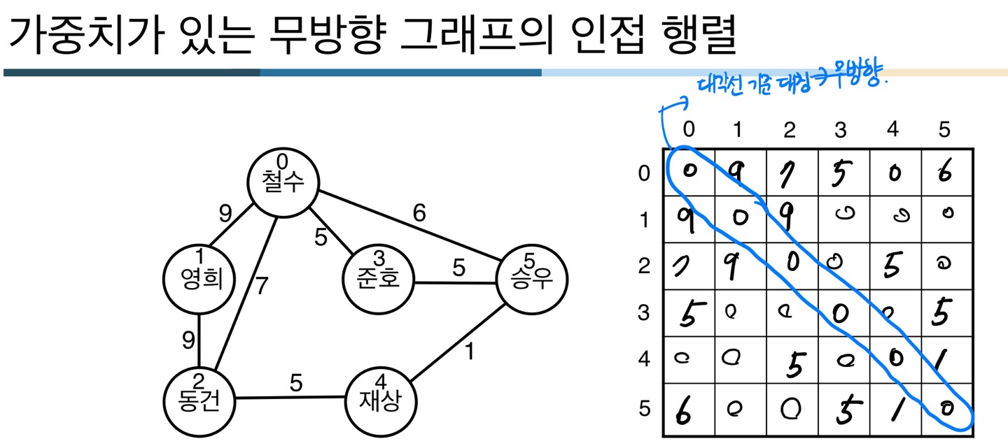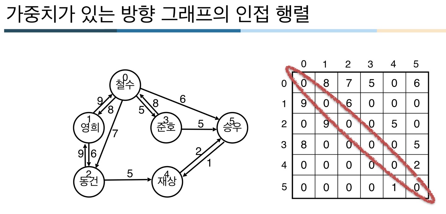 - 가중성 방향 그래프 : 방향 O, 가중치 X